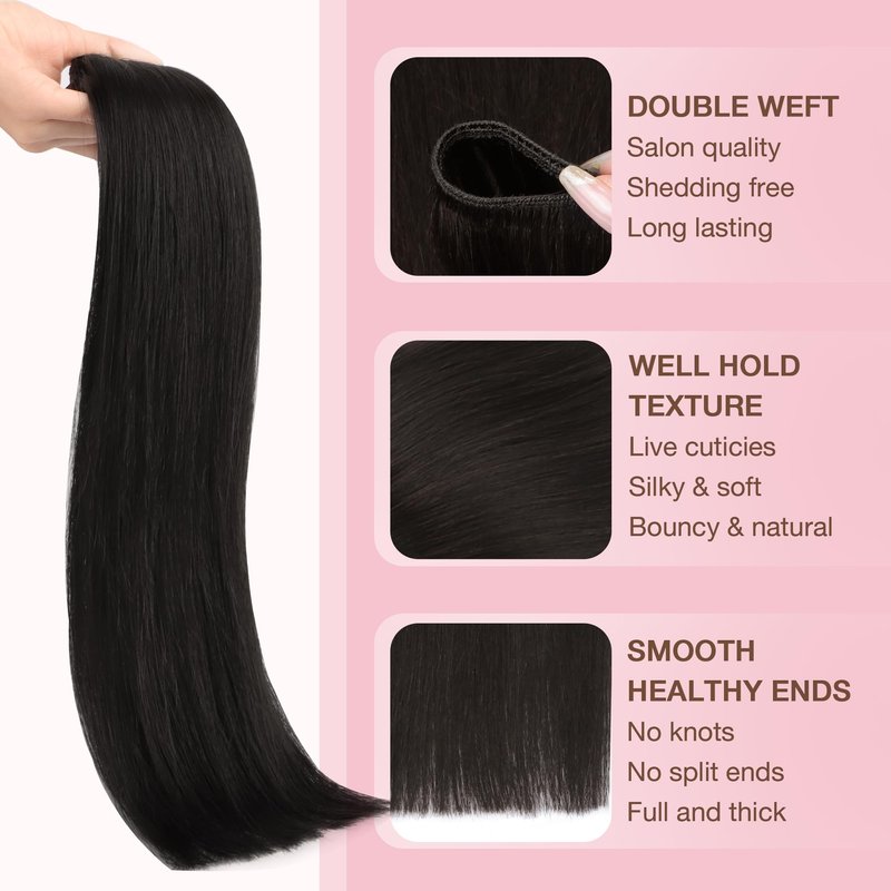 GOO GOO Sew in Hair Extensions Real Human Hair, Weft Hair Extensions Human Hair, 1B Natural black 20 Inch-105g, Weft Bundles Straight Silky Remy Hair