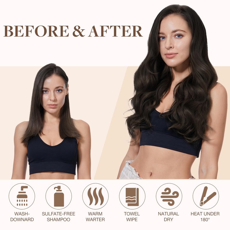 Our extensions come in a silky straight texture, but can be easily curled or waved to suit your styling preferences.