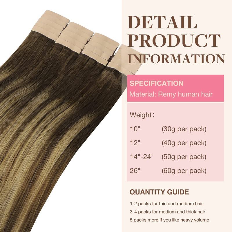 - Premium Grade Hair Extensions: Made from 100% remy human hair of 9A grade high quality, our tape in hair extensions provide a soft, natural feel that blends with your hair seamlessly. With proper care, they can last up to 2-4 months. Weight:10in 30g, 12in 40g, 14in-24in 50g, 26in 60g, total 20 pieces. We recommend using 2-3 packs for a full head.