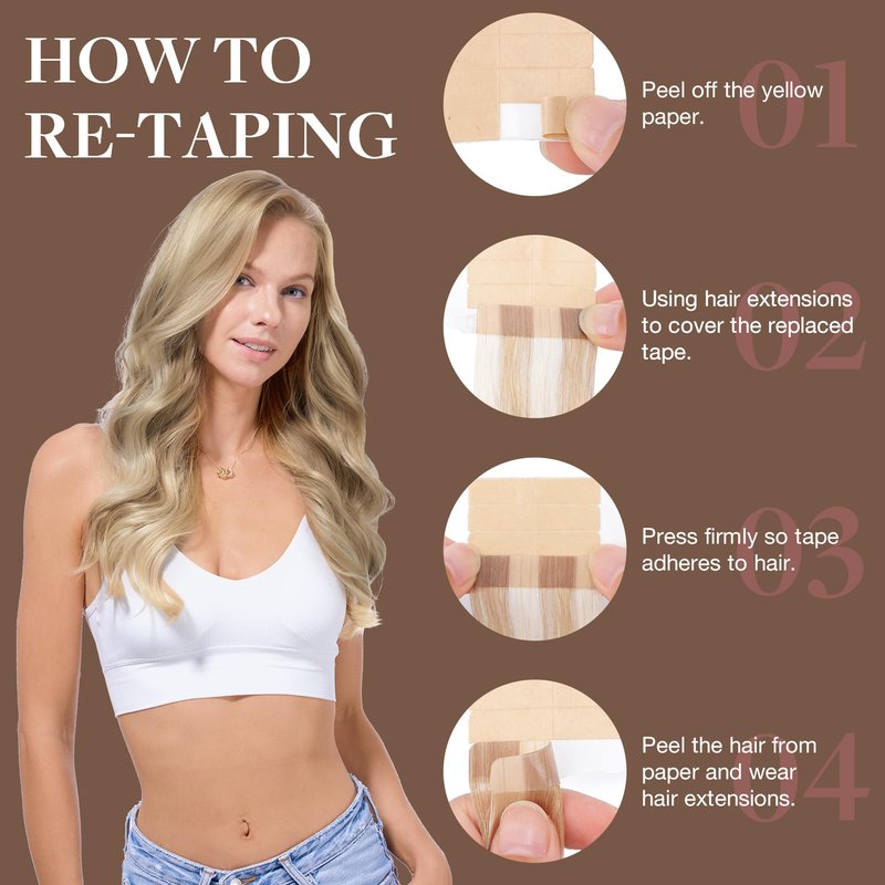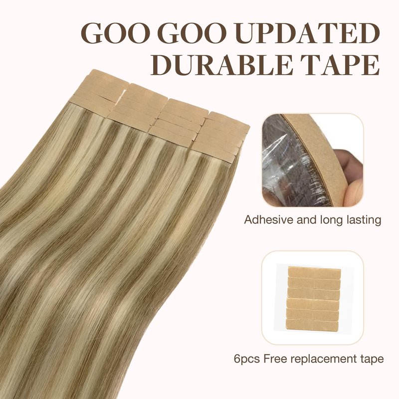 - 【Strong & Invisible Tape】-- GOO GOO hair extensions feature specially developed high-strength invisible tape that is hypoallergenic, durable, and not easy to fall off. The tape lasts up to 4-6 weeks and can be replaced as needed. It's lightweight and comfortable, without pressure, easy to install and remove, perfectly attached to your scalp without any discomfort.