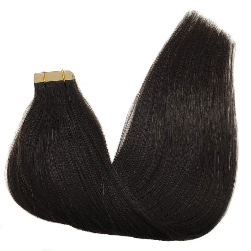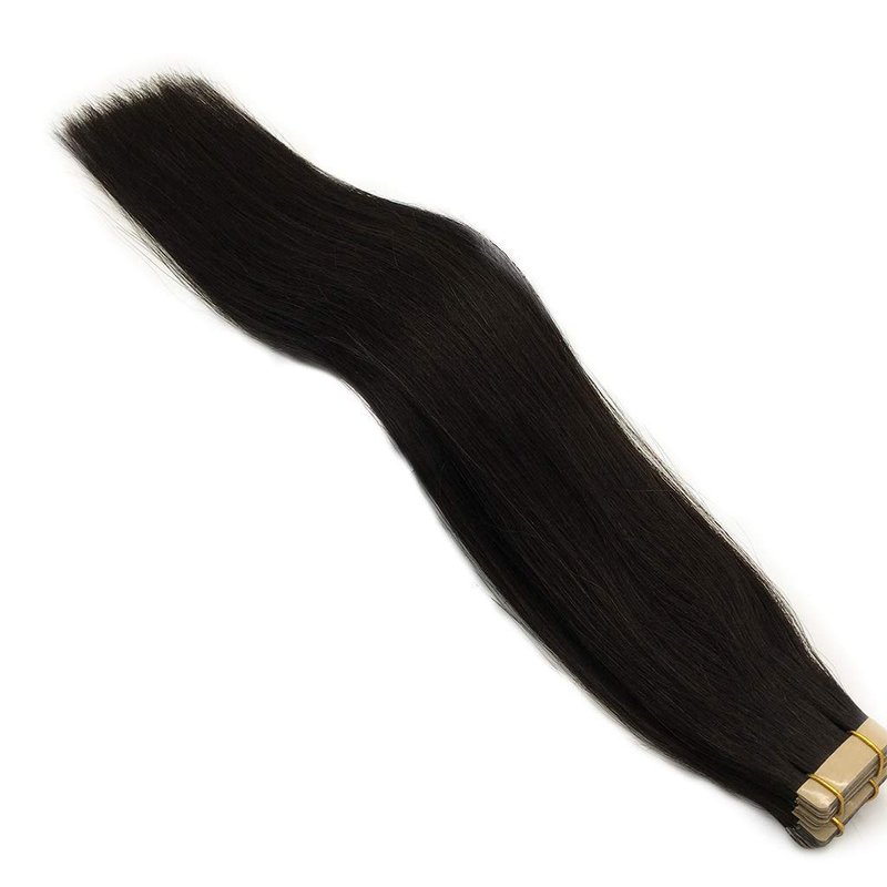 GOO GOO Tape in Hair Extensions Human Hair, 1B Natural black, 20inch 50g 20pcs, Thick Ends Straight Seamless Tape in, Invisible Tape in Hair Extensions Human Hair