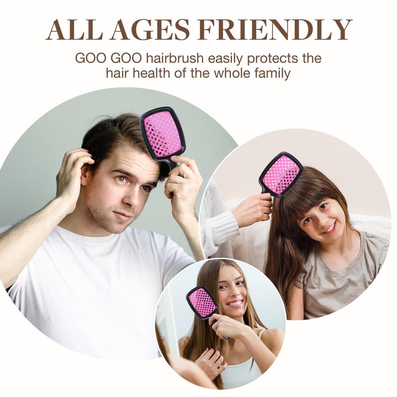 GOO GOO Wet and Dry Vented Detangling Hair Brush, Anti-static and Gentle Scalp Massage for All Hair Types, Black Pink