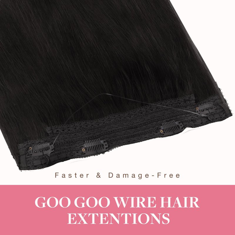 - Premium Remy Human Hair Extensions: Crafted from 100% real human hair. GOO GOO metal wire hair extensions are ultra-soft and silky, the transparent wire effortlessly blends with your hair color, removing the need for damaging tapes or chemicals