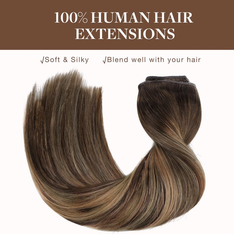 GOO GOO Wire Hair Extensions Human Hair, 4/27/4 Chocolate Brown with Caramel Blonde Balayage 20inch 110g, Invisible Wire Hair Extensions with Transparent, Seamless Fish Line Hairpiece