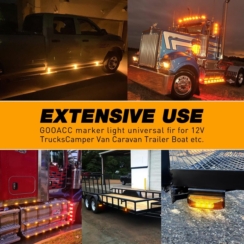 - Universal Functions: Used as LED marker light at front rear side roof top or led clearance light indicator light on any 12v truck trailers suv rv van caravan pickups camper boat lorry bus etc. 2 Years Warranty Honored by GOOACC