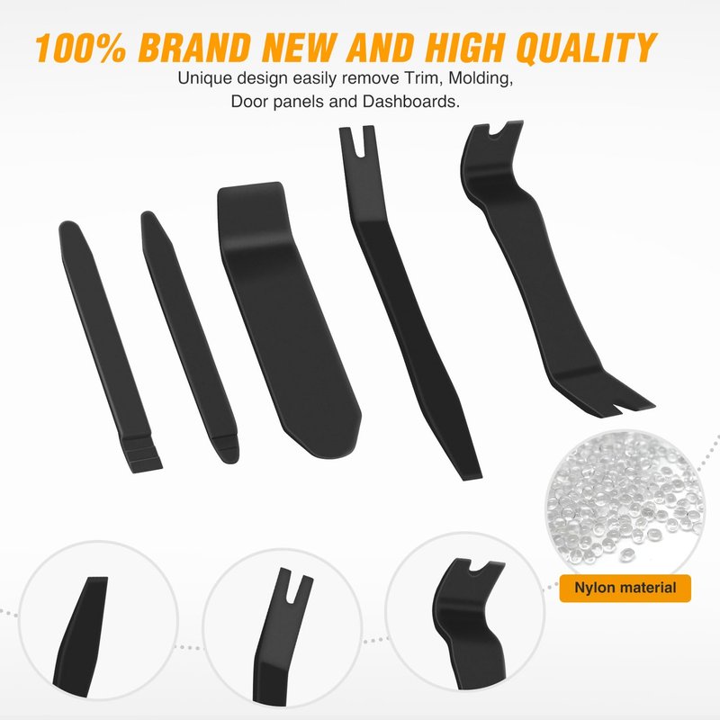 - 【Save Time,Frustration and Money】- There are 6 pcs different kinds of trim tools, including 5 pcs car panel removal tool and 1 fastener remover to facilitate your needs when repairing.