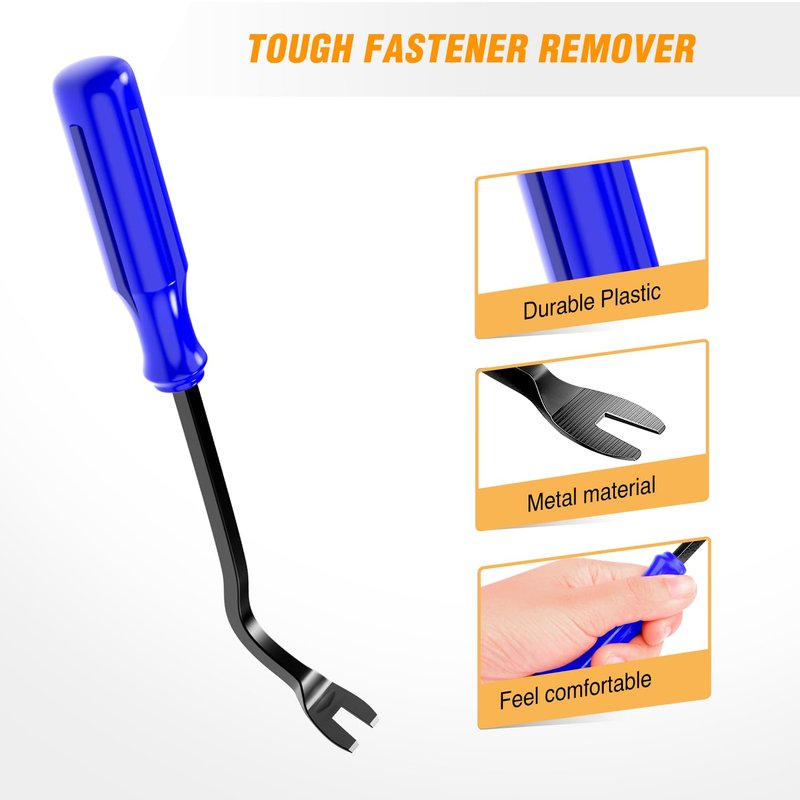 - 【Save Time,Frustration and Money】- There are 6pcs different kinds of trim tools, including 5 pcs car removal tool and 1 fastener remover to facilitate your needs when repairing.