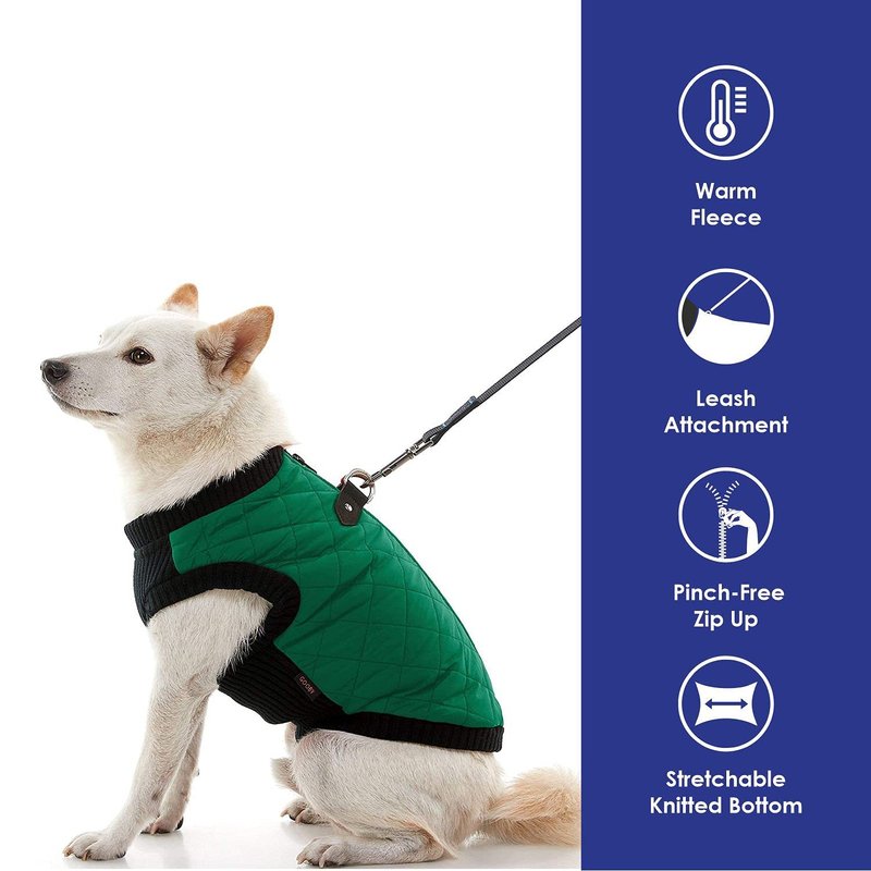 Gooby Fashion Vest Dog Jacket - Green, Small - Warm Zip Up Dog Bomber Vest with Dual D Ring Leash - Winter Water Resistant Small Dog Sweater - Dog Clothes for Small Dogs Boy or Medium Dogs