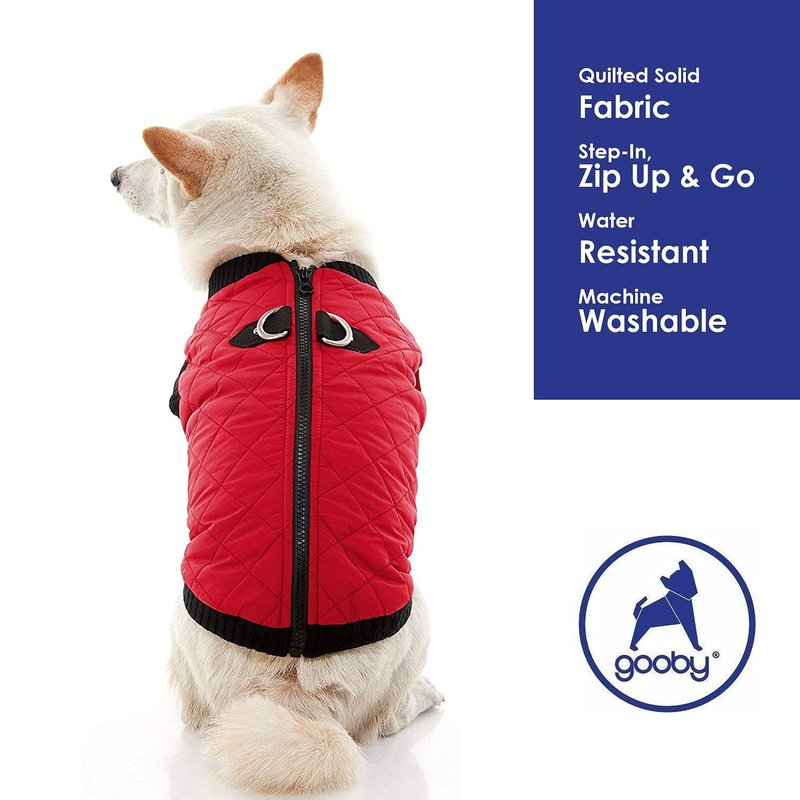 Gooby Fashion Vest Dog Jacket - Red, Small - Warm Zip Up Dog Bomber Vest with Dual D Ring Leash - Winter Water Resistant Small Dog Sweater - Dog Clothes for Small Dogs Boy or Medium Dogs