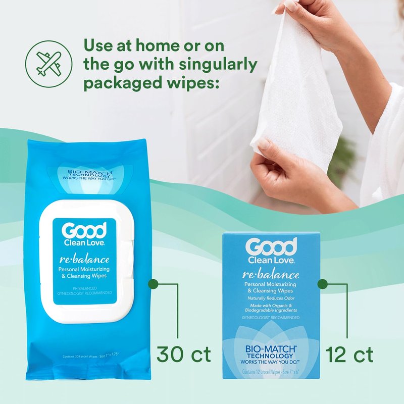 Good Clean Love Rebalance Feminine Wipes, Supports Vaginal Health Naturally & Reduces Odor, Moisturizing & Cleansing Hygiene Product Made with Aloe, pH-Balanced Feminine Wipes, 24 Biodegradable Wipes