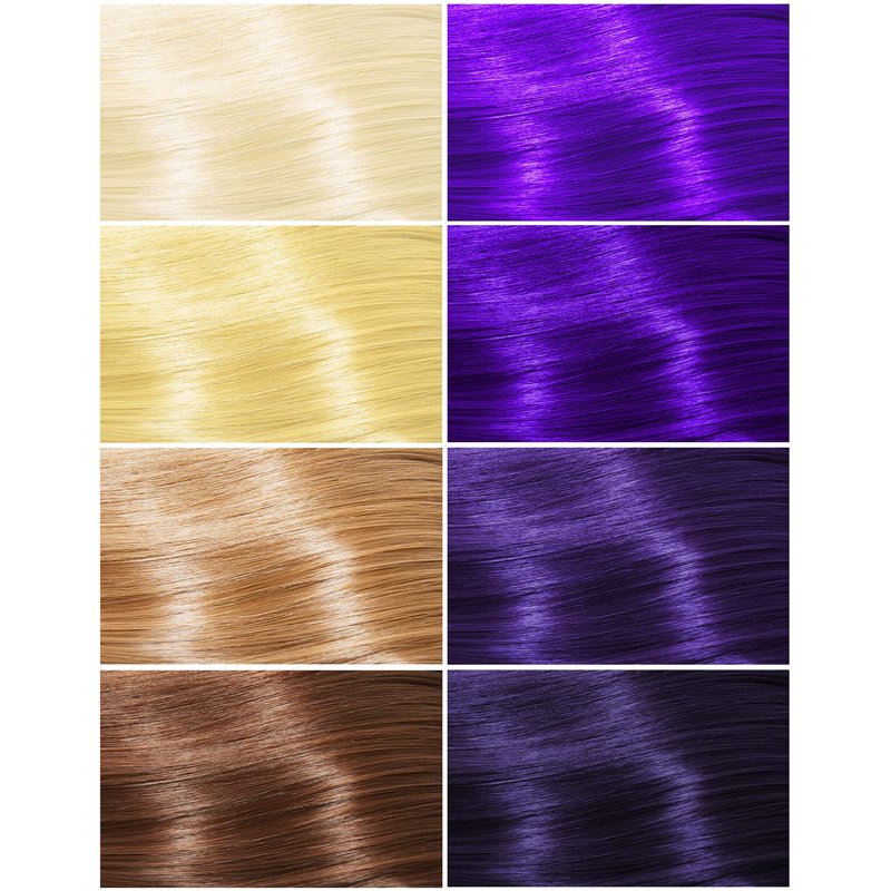 - HOW TO USE: This temp hair dye color shows best on level 10 light blonde hair. Lighten your hair using our Lightening Kit & squeeze out some color into our Tool Kit. Wear gloves to prevent staining. Do a strand test with this hair dye purple before dividing your hair into 4 sections & applying it all over! Make sure the color is fully saturated. Let sit for 30 minutes before rinsing out with cool water.
