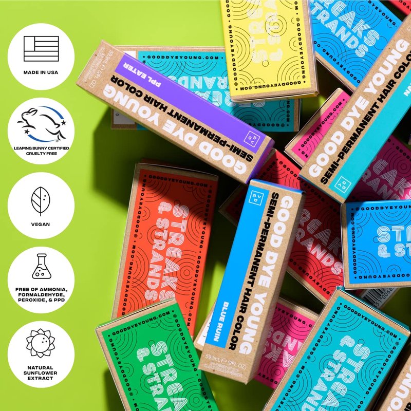 - PURPLE HAIR DYE! Our Good Dye Young Hair Dye semi permanent combines salon-grade pigments with a nontoxic, conditioning formula that deposits ultra-vibrant color. Our temporary hair dye combines a high-quality cream base with essential oil benefits.