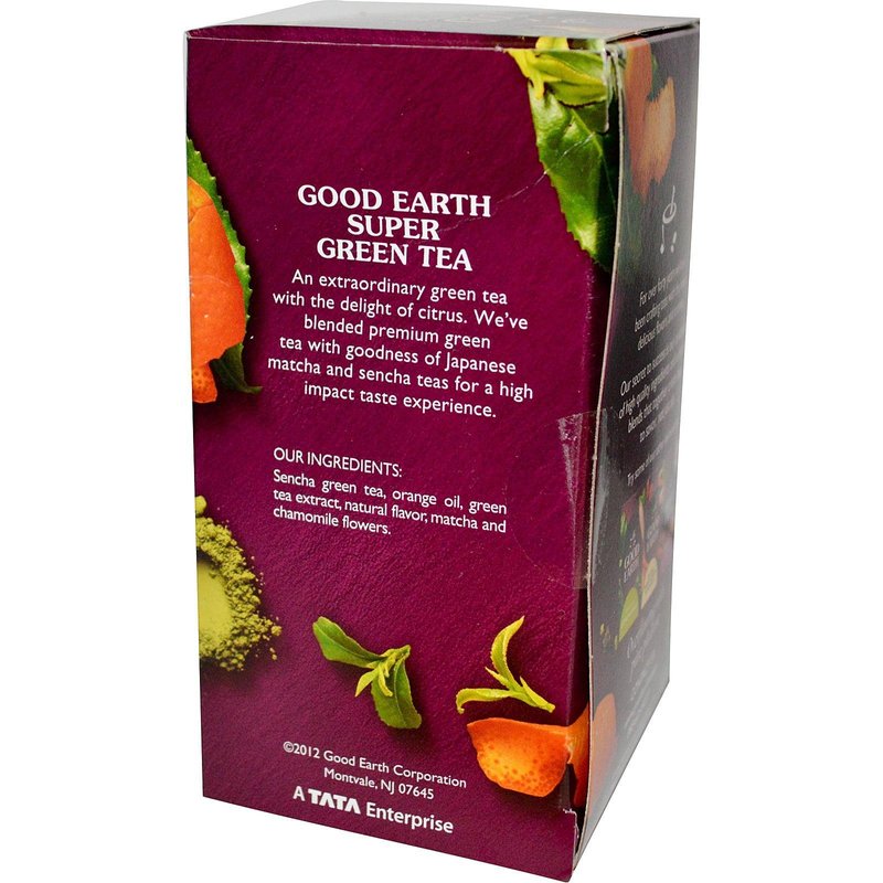 Good earth green tea - matcha maker - case of 6 - 18 countcountry of origin : united statesis gluten free : yesis kosher : yessize : 18 ctpack of : 6selling unit : caseingredients : green tea;licorice root;orange peel;chamomile;orange oil;natural flavor;ginger root;natural orange flavor with other natural flavors;lime oil;citric acid;steviol glycosides;stevia;matcha green tea;tea extract