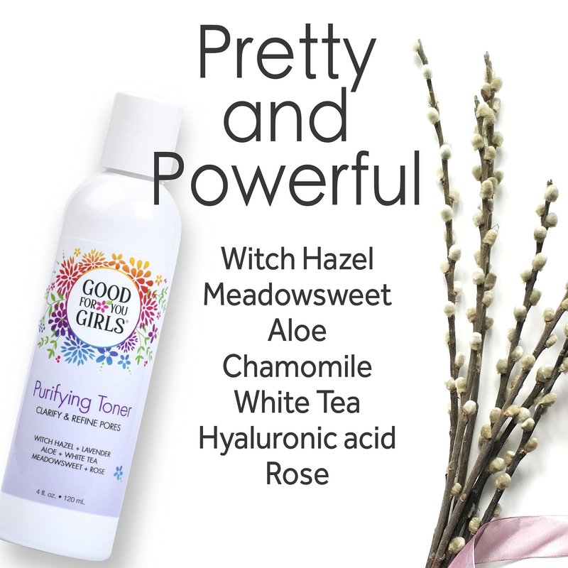 BETTER THAN HYPOCHLOROUS! Good For You Girls Purifying Toner is a multi-tasking facial toner infused with botanical extracts that revitalizes skin and keeps oil production at bay. Witch hazel, meadowsweet extract and aloe reach deep into pores to remove pore clogging oils. This natural toner also contains soothing organic botanicals like chamomile and calendula to help soothe and balance skin’s delicate pH. Also contains hyaluronic acid to hydrate with powerful antioxidant protection of green, white, and black tea extracts. Free of alcohol, this toner won't dry out the skin. Use it after cleansing and right before moisturizing or anytime you need a boost of hydration or to feel refreshed. Good For You Girls non-drying toner is free of parabens, sulfates, phthalates, silicone, synthetic fragrances, and dyes, making it safe for sensitive skin.