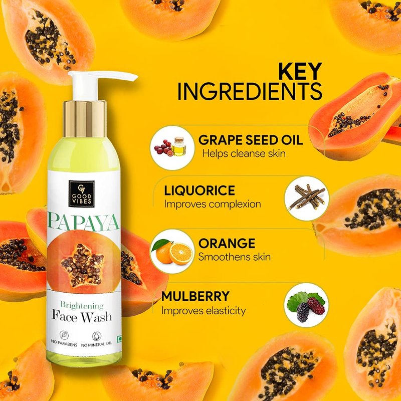 - SKIN TYPE: Good Vibes Papaya Face Wash is suitable for all skin types. This product is not tested on animals and contains no parabens and mineral oils.