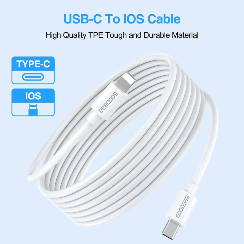 GOODaaa PD 20W Wall Charger with Cable Dual Ports Fast Charing Power Adapter for All iPhone Series and Android Devices