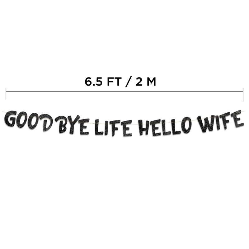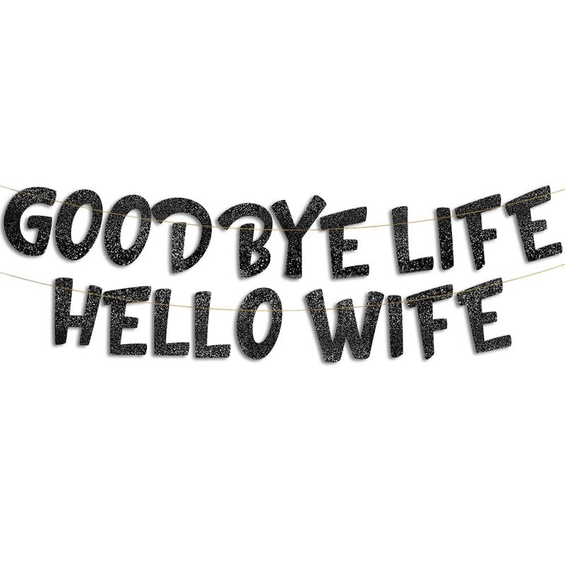 - Need something to embarrass the bachelor? Our " Goodbye Life Hello Wife" black glitter banner is the perfect amount of immaturity to make his bride cringe.