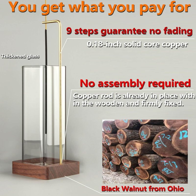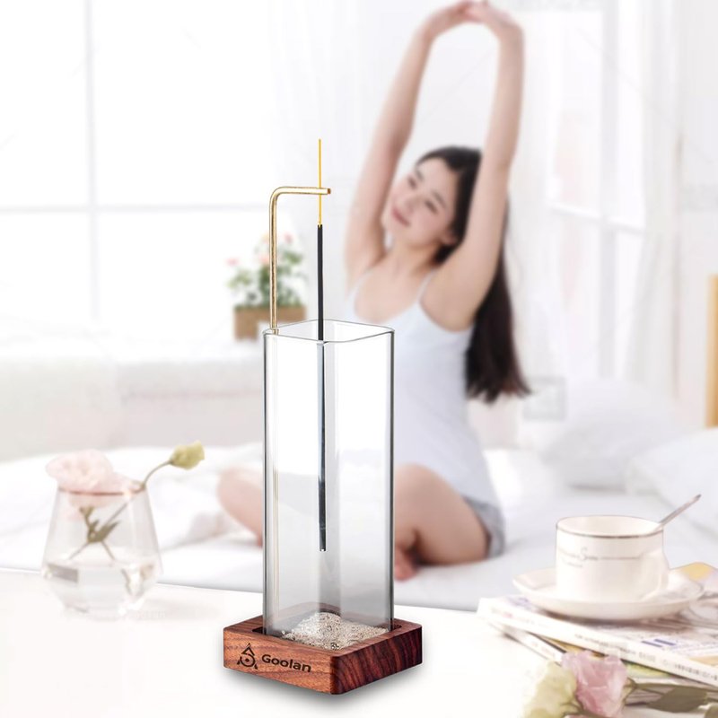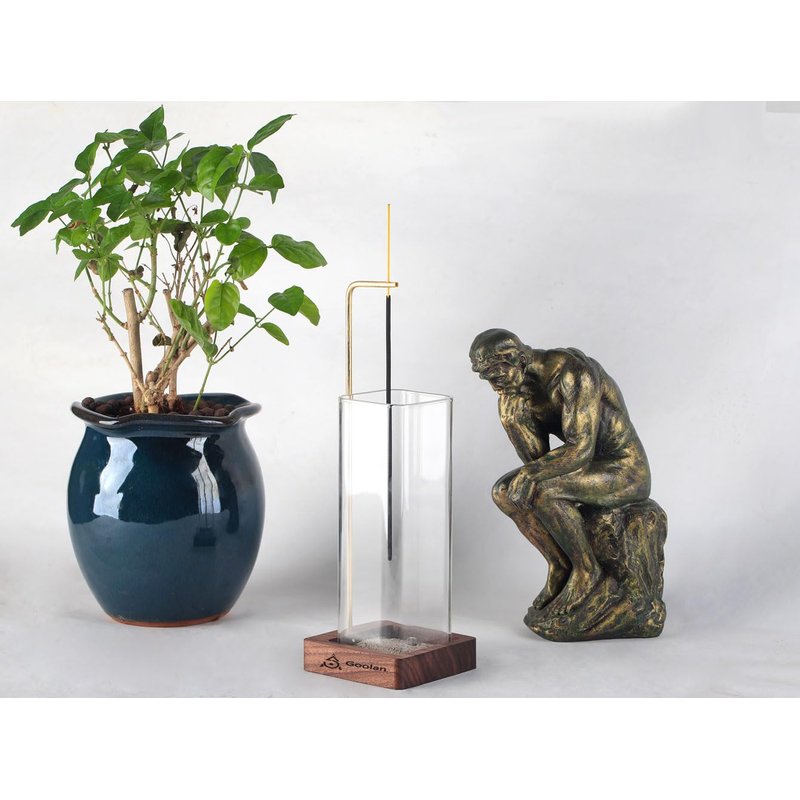 - Design and Material ➤The modern incense holder stick is designed by a master of life aesthetics in North America. The walnut chassis is combined with the brass support rod with a diameter of 4mm. Place the clip on top to make the incense sticks hang upside down, as if suspended in mid-air. The use of a transparent glass ash collection container is closer to nature. When the smoke is lingering in the air and emitting bursts of fragrance,the mood is comfortable.