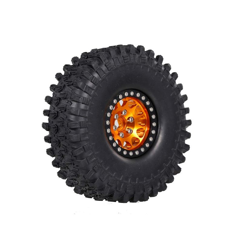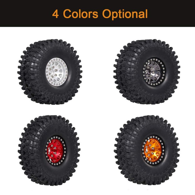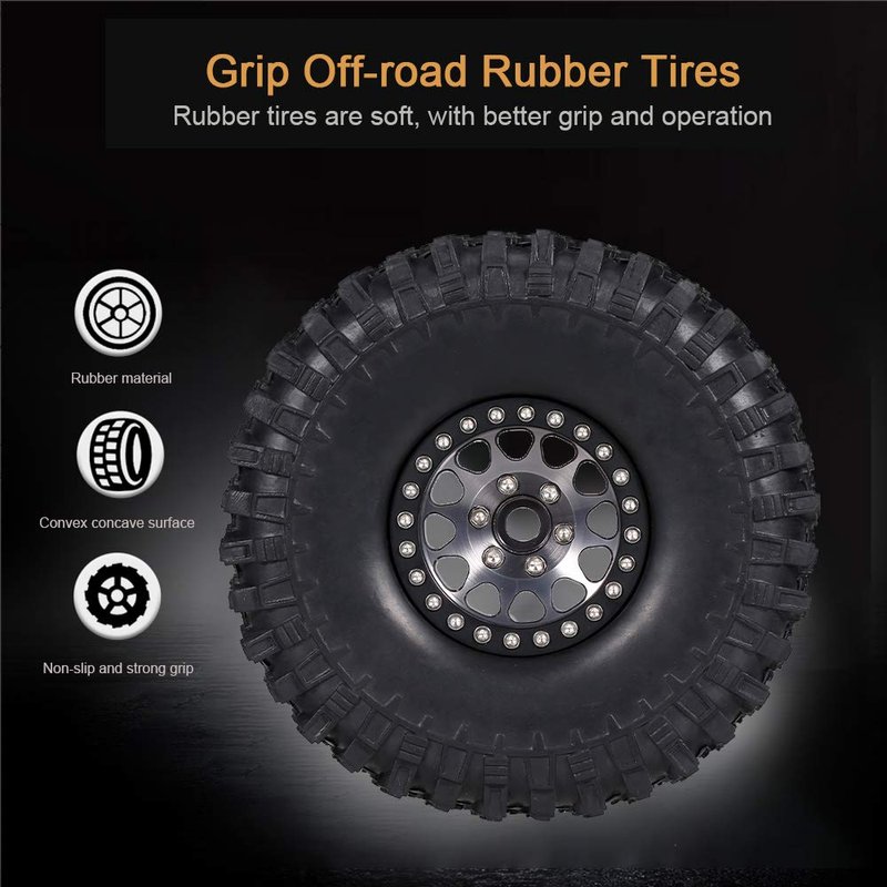 The package includes 4pcs tires. The tires are suitable for 1/10 RC Rock Crawler Traxxas Trx-4 Trx-6 Axial Scx10 90046. Full strong metal wheels rims hub can give good support for the tire.