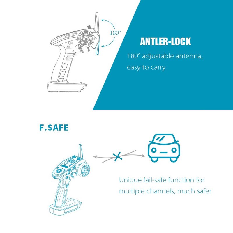 - F.SAFE Function (Fail-Safe Protection): This function can protect the safety of the model when the receiver can not receive the signal from the transmitter normally, and move the actuator arm to the pre-set position.