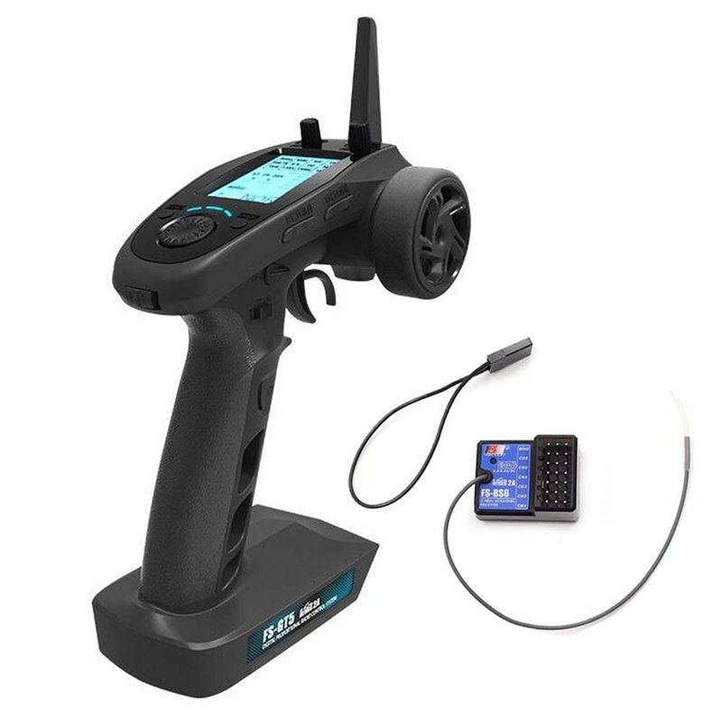 - GT5 transmitter using 2.4GHz AFHDS 2A system, with strong active and passive anti-interference ability. With FS-BS6 receiver, the output of 6 channels, compatible model cars, boats and other models.