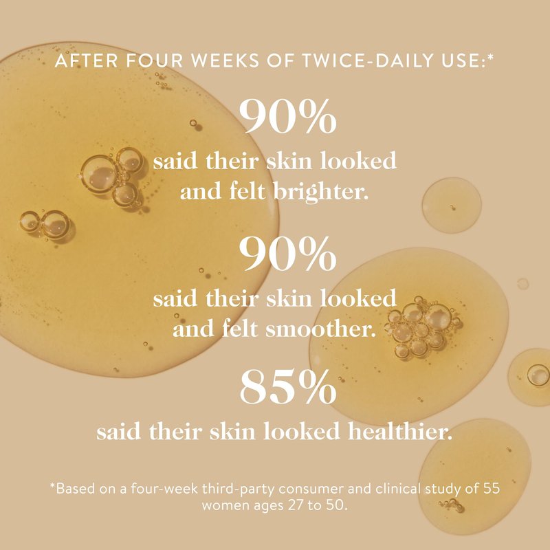 - Clinical Results: Immediately, after one use, 100% of women showed a dramatic improvement in skin hydration.* After four weeks of twice-daily use, 90% of women said their skin looked and felt brighter.*