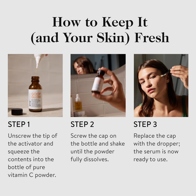 Meet our GOOPGLOW 20% Vitamin C + Hyaluronic Acid Glow Serum