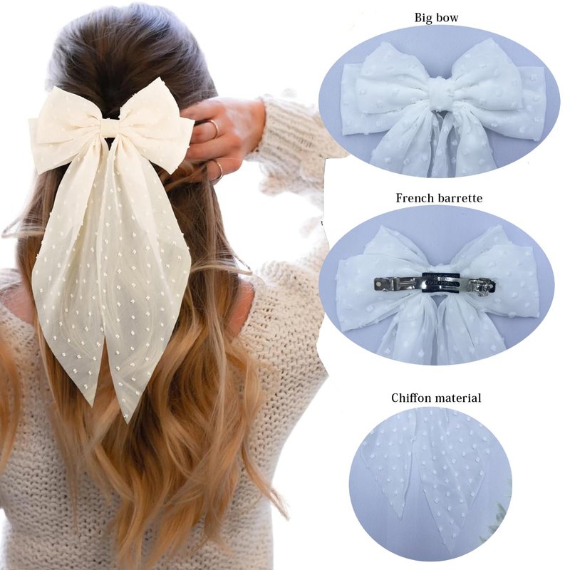 - ✅High Quality Fabric:Hair bows barrettes made from metal french clips and feature decorative polka dot chiffon fabric with long tail, soft and durable, cute bow and long tail.