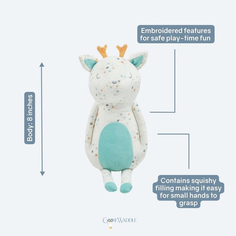 GooseWaddle Super Soft Printed Plush Adorable Stuffed Animal for Kids, Baby Dolls, and Reindeer Lovers for Playtime and Cuddles (8" When Sitting) (Leo Reindeer)