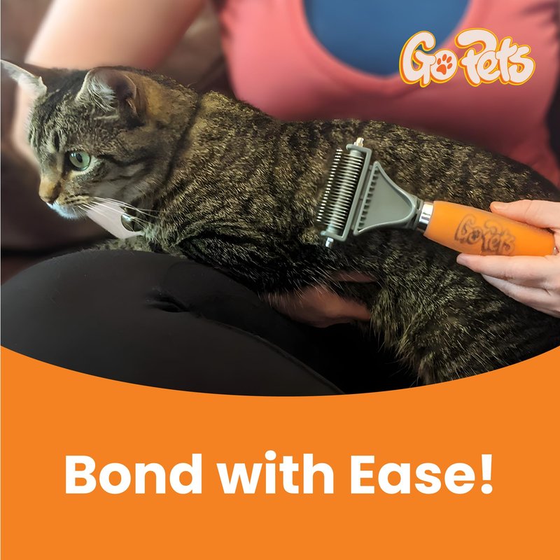 GoPets 2-Sided Dematting Comb - Professional Grooming Rake for Cats & Dogs, Long Hair Deshedding Tool, Undercoat Brush - For Matted & Long-Haired Pets