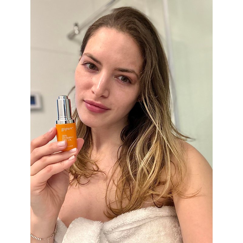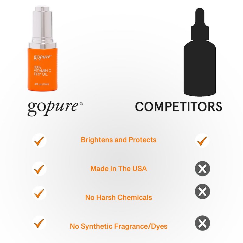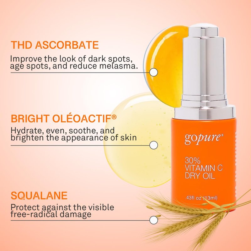 goPure 30% Vitamin C Dry Oil - Dark Spot Reducer with Anti-Aging Vitamin C Oil to Improve Fine Lines & Wrinkles with Moisturizing Squalane for Glowing & Youthful-Looking Skin - 0.43 fl oz