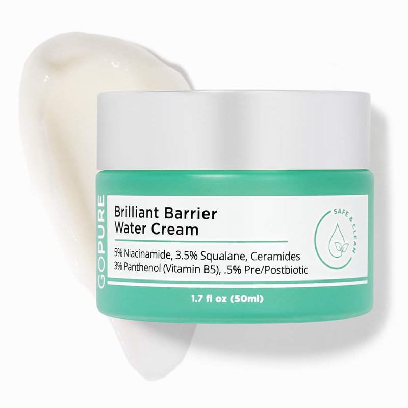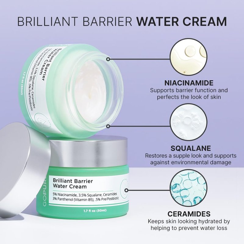 goPure Brilliant Barrier Water Cream - Hydrating Niacinamide Water Cream, Hydrating Sleeping Mask, Skin Barrier Support, Squalane and Ceramides for a Visibly Perfected and Moisturized Look - 1.7 Fl Oz