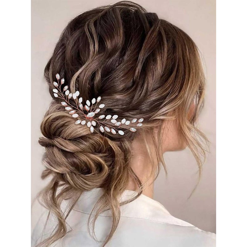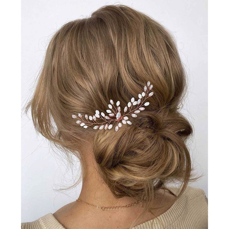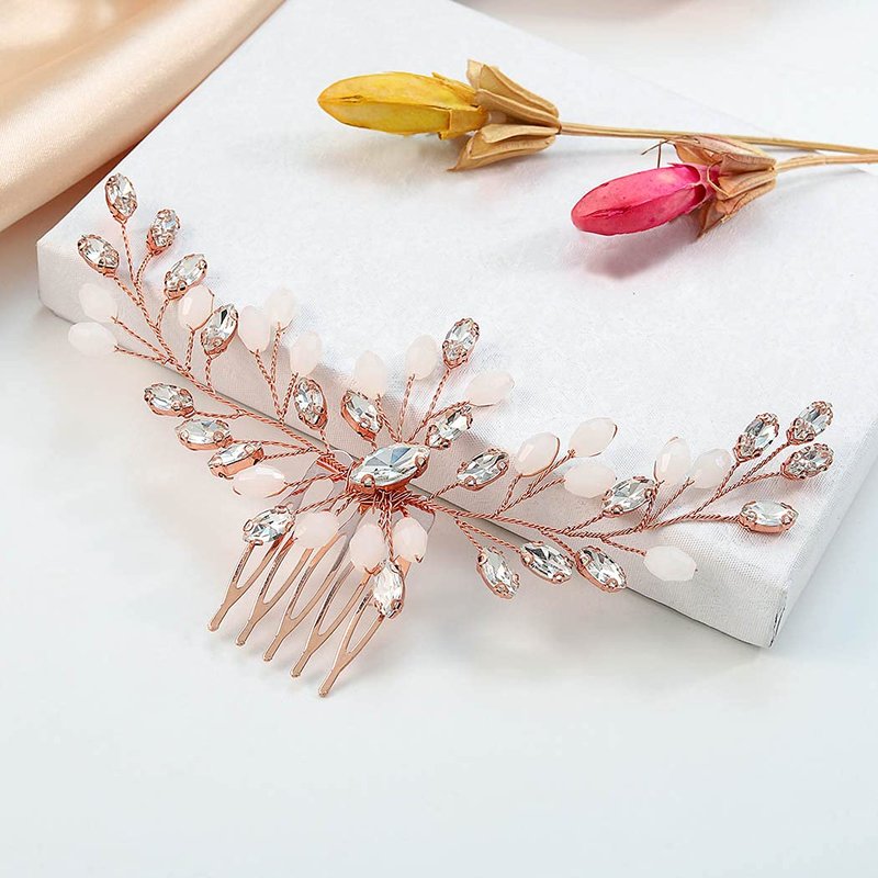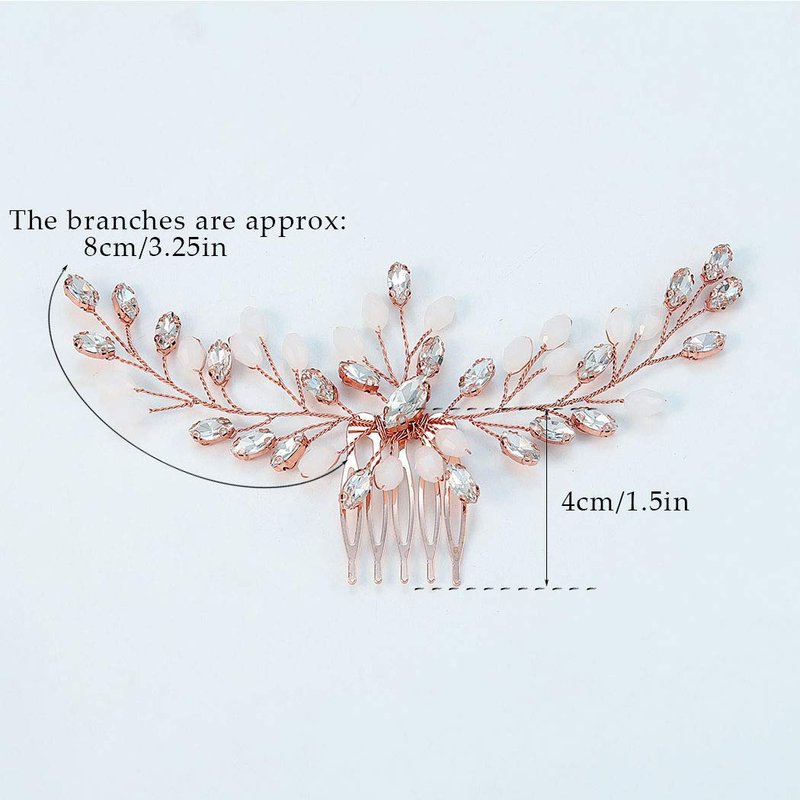 Gorais Bride Wedding Hair Comb Rose Gold Crystal Bridal Hair Pieces Opal Hair Accessories for Women and Girls (Rose gold)