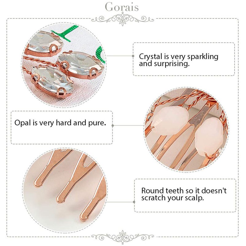 - Unique headpieces are made of alloy wire,opal and sparkling crystal.Round teeth so it doesn't scratch your scalp.You will surely get a ton of compliment!!!