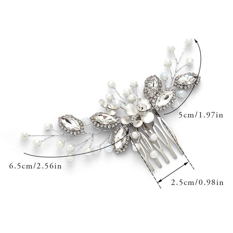 - Bridal hair comb approx. length: 14cm (5.5in).It is flexible enough so you can bend it to fit the shape you need for your style.