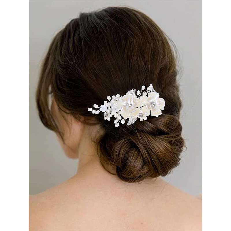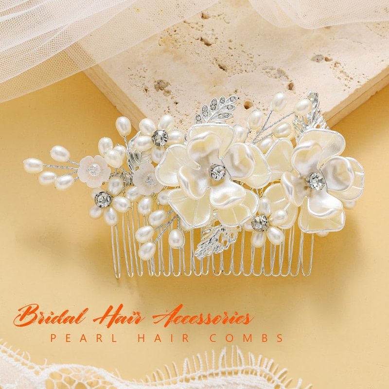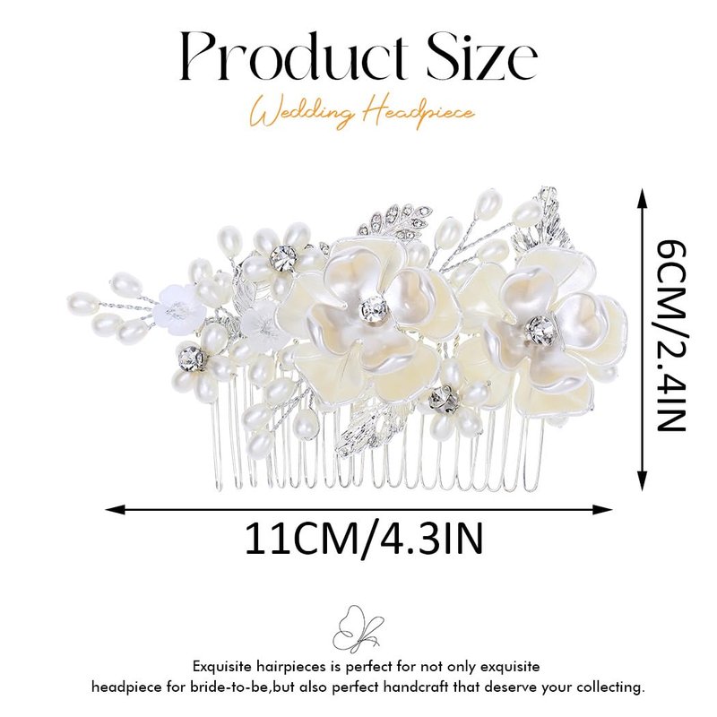 - Wedding hair accessories are made of silver alloy leaf,pearl,flower and crystal.A sense of design,full of charm,you will get a ton of compliment.