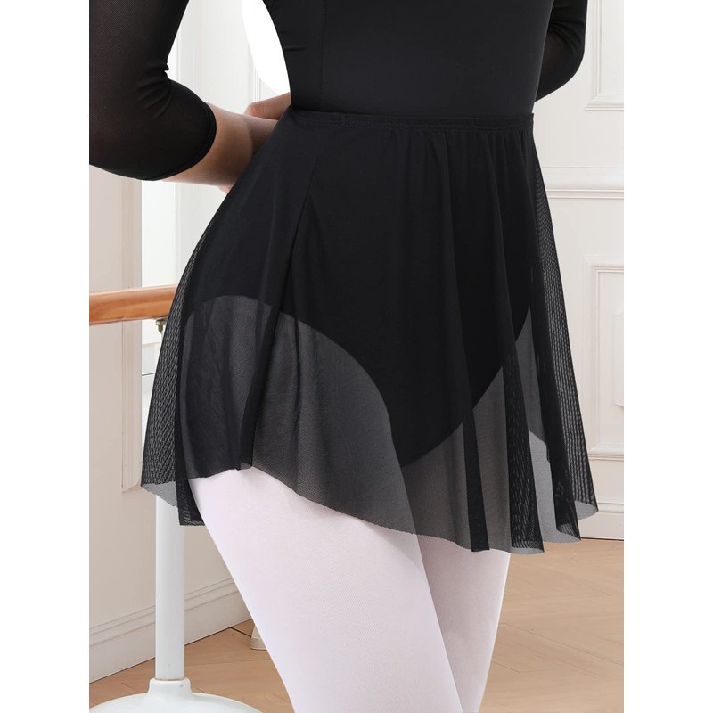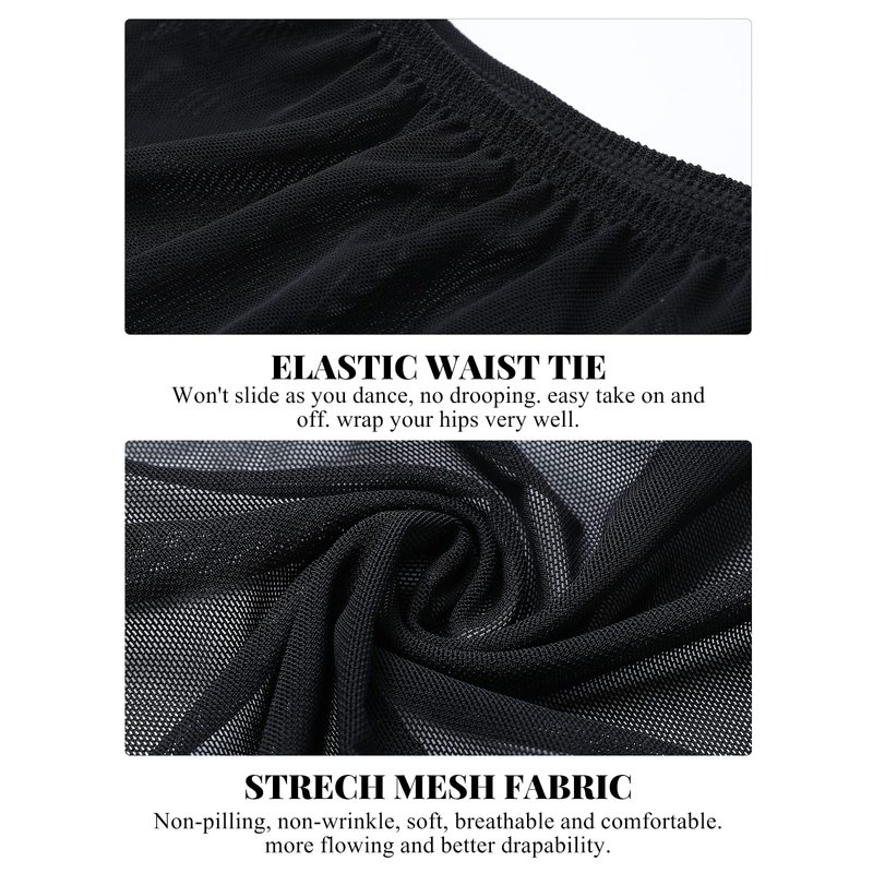 Gorchnc Pull on Ballet Skirt for Women Adult Girls Toddler Dance Skirt Mesh Ballerina Skirt Stretchy Ballet Dance Skirt Black