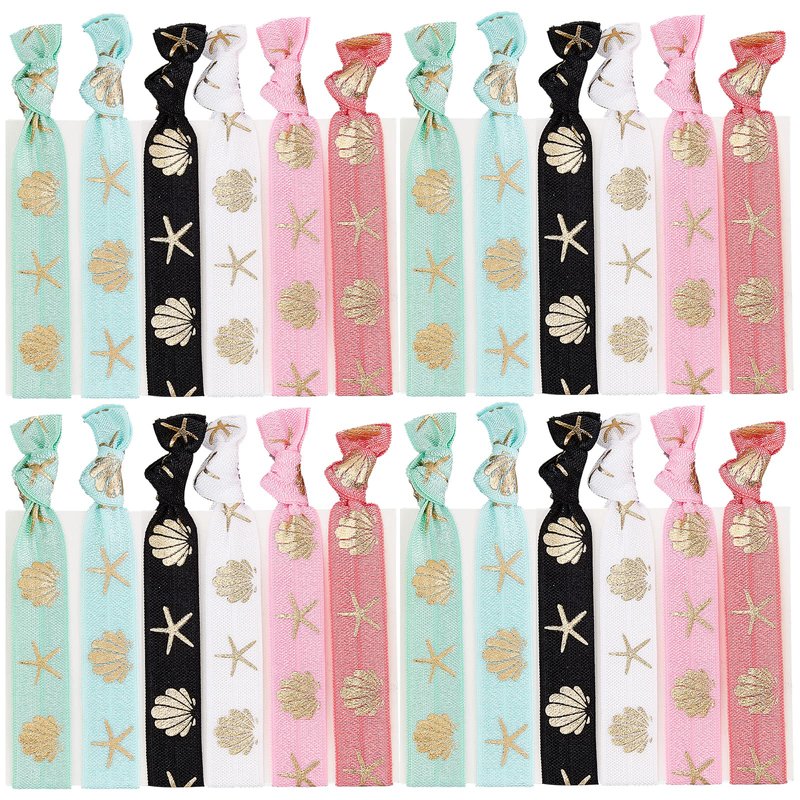 GORGECRAFT 24PCS Printed Glitter Hair Ties Knotted Elastics Ponytail Holders Ocean Theme No Crease Elastic Ribbon Band Crease Free Hand Twist Bracelet Accessories for Women Brand: GORGECRAFT Material: Elastic Fibre Usage: Hair Ties Feature: ❤[HIGH QUALITY]: The elastic headband is made of high-quality nylon and rubber, flexible and stretchy, soft to use, durable enough and no need to worry about fading and breaking. ❤[GOOD ELASTICITY TO USE]: The elastic hair ties rope has good elasticity and can easily restore the original length without deformation within the allowable stretch elastic deformation range. Size & Quantity: 24PCS printed elastic cord in 6 colors, each color 4pcs, about 5/8" inch wide, 3.9inch/10cm long. Ocean theme: seashell, starfish.