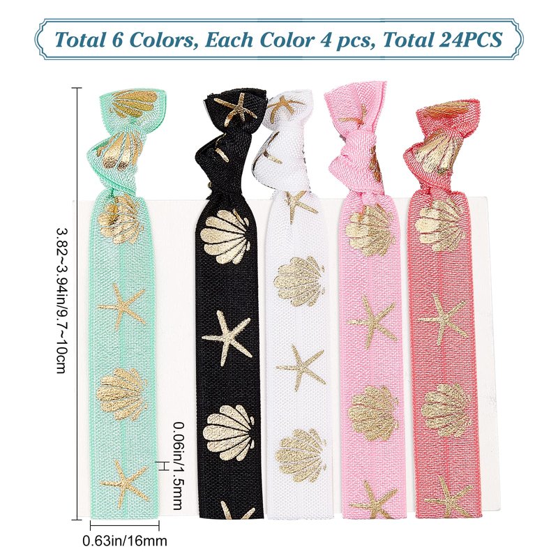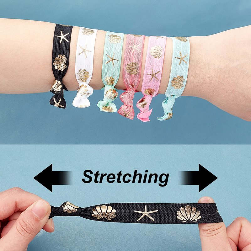 - ❤[24PCS]: 24PCS printed elastic cord in 6 colors, each color 4pcs, about 5/8" inch wide, 3.9inch/10cm long. Ocean theme: seashell, starfish.