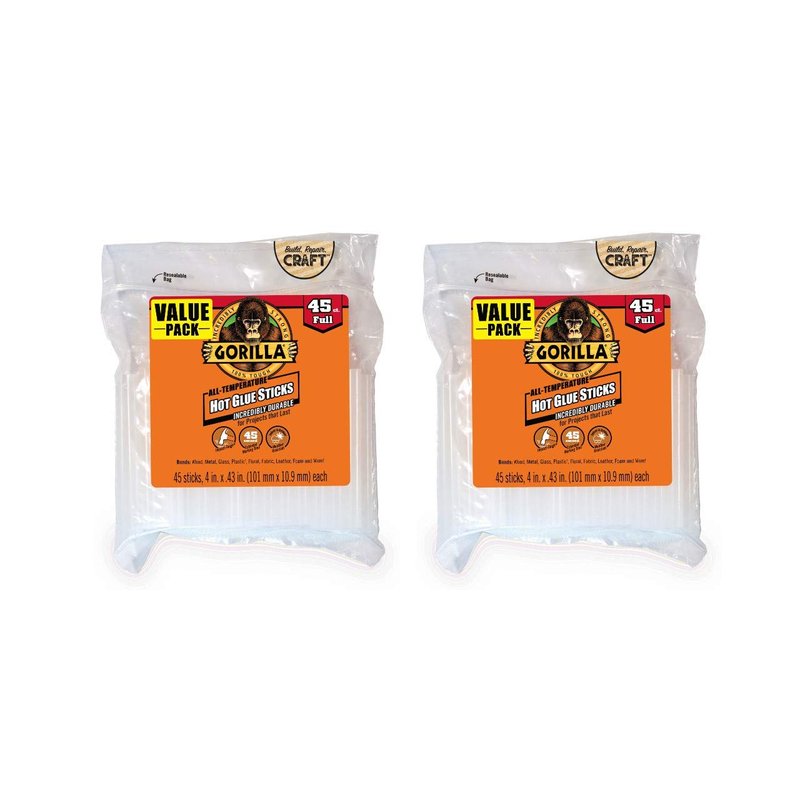 Gorilla 3034505 Hot Glue Sticks, 4 in. Full Size, 45 count, Clear, 2
