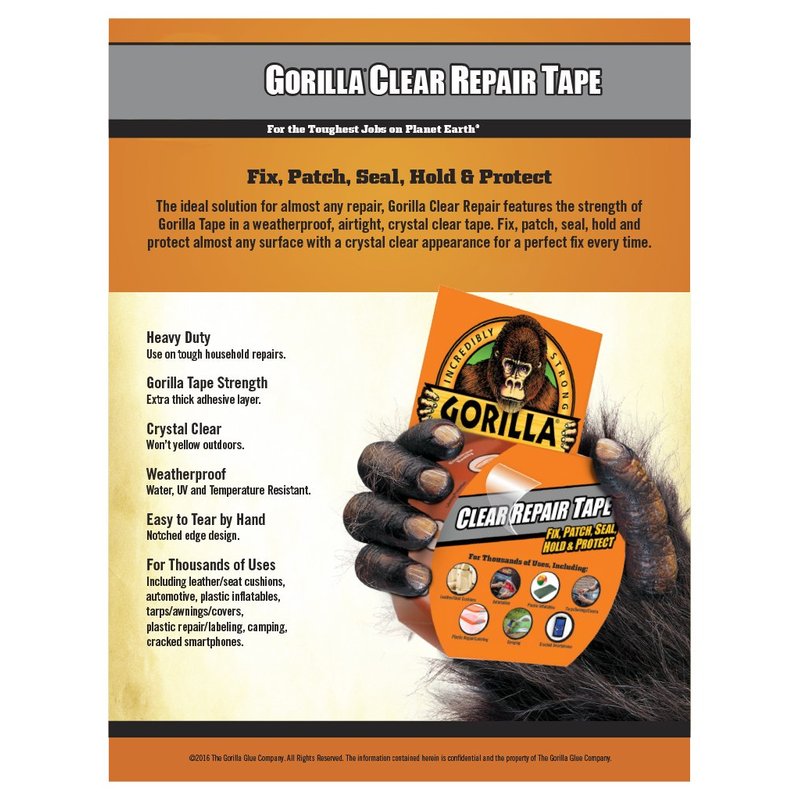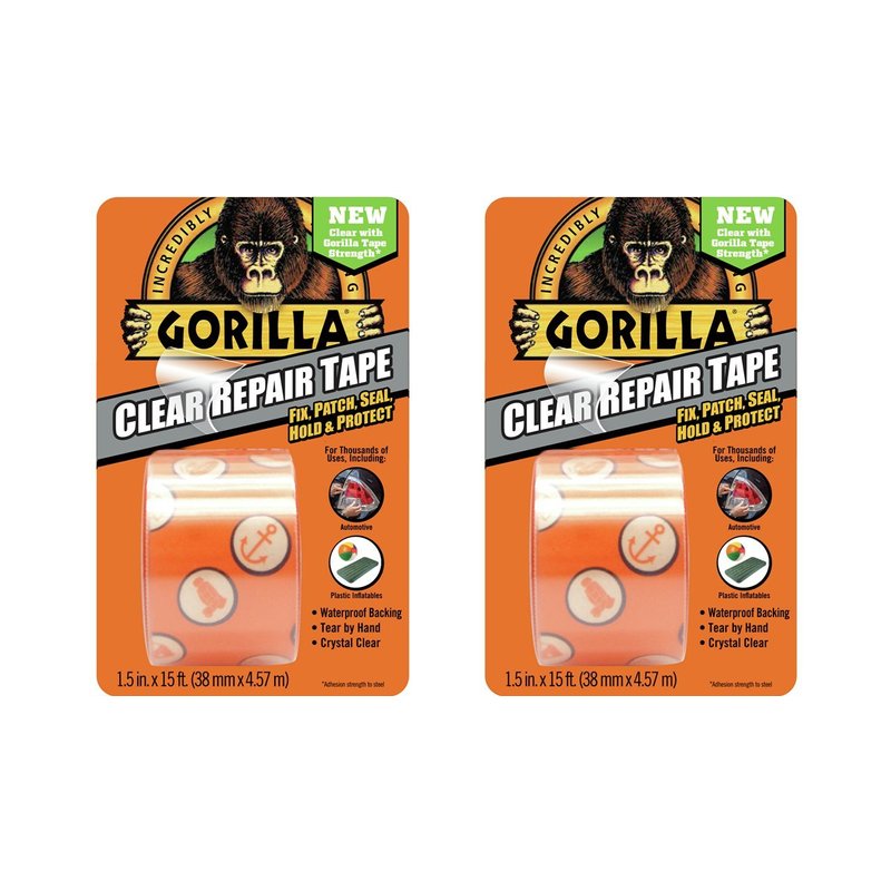 Gorilla Crystal Clear Duct Tape, 1.88" x 5 yd, Clear, (Pack of 2)