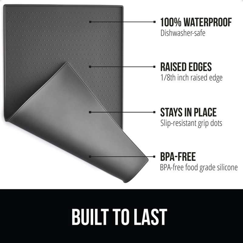 - 100 PERCENT WATERPROOF FOR ULTIMATE FLOOR PROTECTION: some of the cutest pets can be the messiest eaters and drinkers; mat is constructed from 100% waterproof silicone that is dishwasher safe for an easy clean; mat features a 1/8-inch-thick raised edge around its border that helps to contain liquid runoff to the top of the mat; mat acts as a barrier to help prevent spills from reaching your floors and causing potential damage