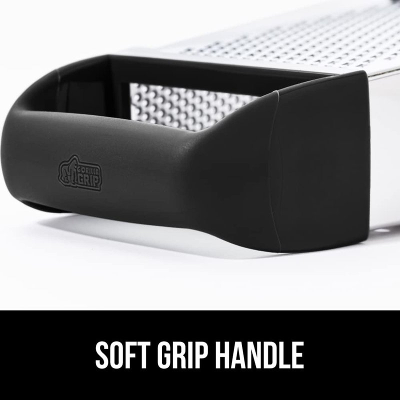 Gorilla Grip Professional 100% BPA Free 4-Sided Cheese Grater, Stainless Steel XL Box Graters with Ergonomic Handle, Parmesan Shredder, Ginger Carrot Slicer, Dishwasher Safe, Include Container, Black