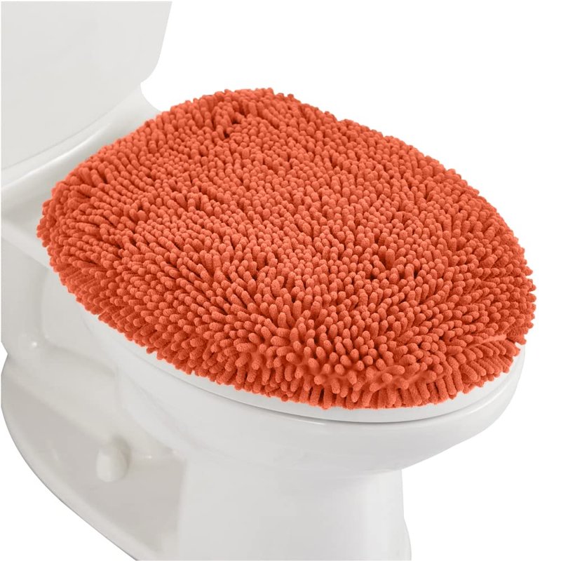 Gorilla Grip Soft Chenille Bathroom Toilet Lid Cover, Machine Washable Seat Covers, 17.5x15, Stays in Place Rubber Backing, Fits Most Round, Elongated and Oblong Lids, Accessories Decor, Coral