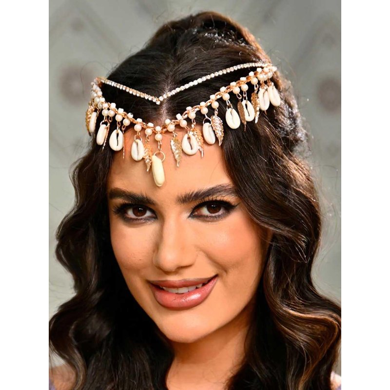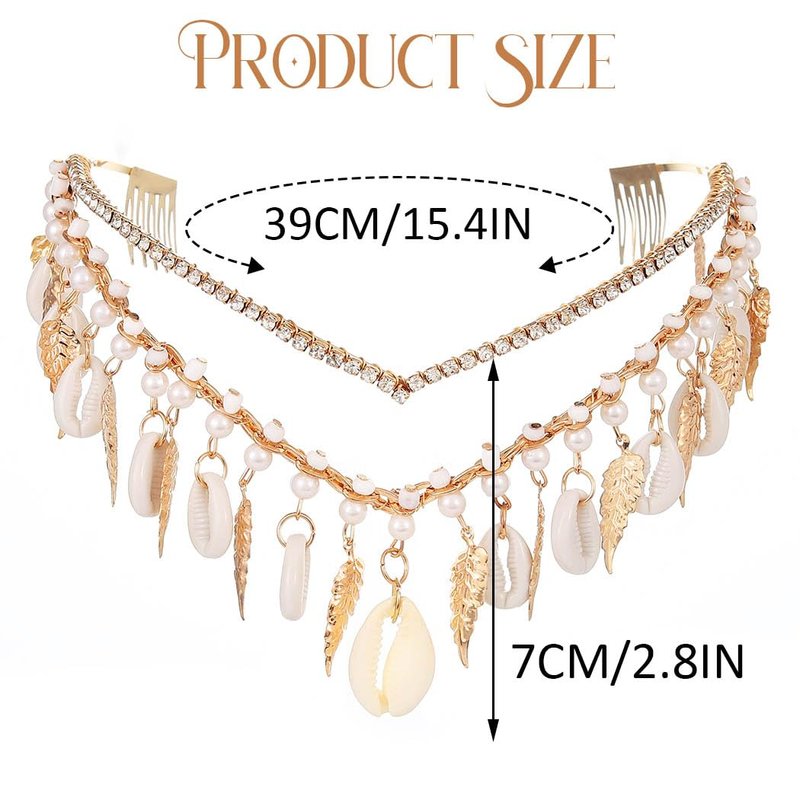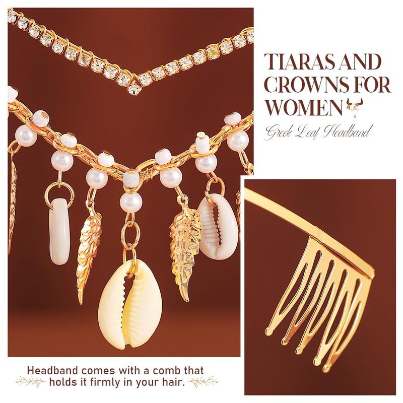 - Gold leaves headband is luxury and elegance, gold leaves and seashell create a regal and sophisticated look , that will elevate any outfit.