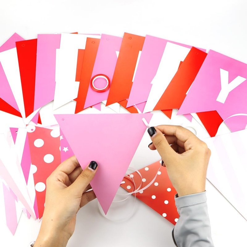 - SUITABLE SIZE: Birthday banner measures approximately 4.5” x 6.2”, the triangular flag measures approx 5.7” x 6.5”. 13 paper flags on satin rope to spell out “HAPPY BIRTHDAY”. 12 triangular flags light up the atmosphere of the party, making the birthday party full of rituals and memories.The spacing between the flags can be adjusted to make them look more harmonious and delicate for different DIY effects.