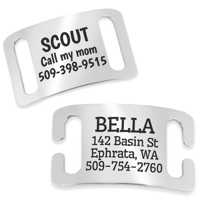 - NEW UPDATED DESIGN - Tags have been curved to perfectly fit your pet's neck for maximum comfort. The best way to avoid the noise of dangling tags without sacrificing identification.