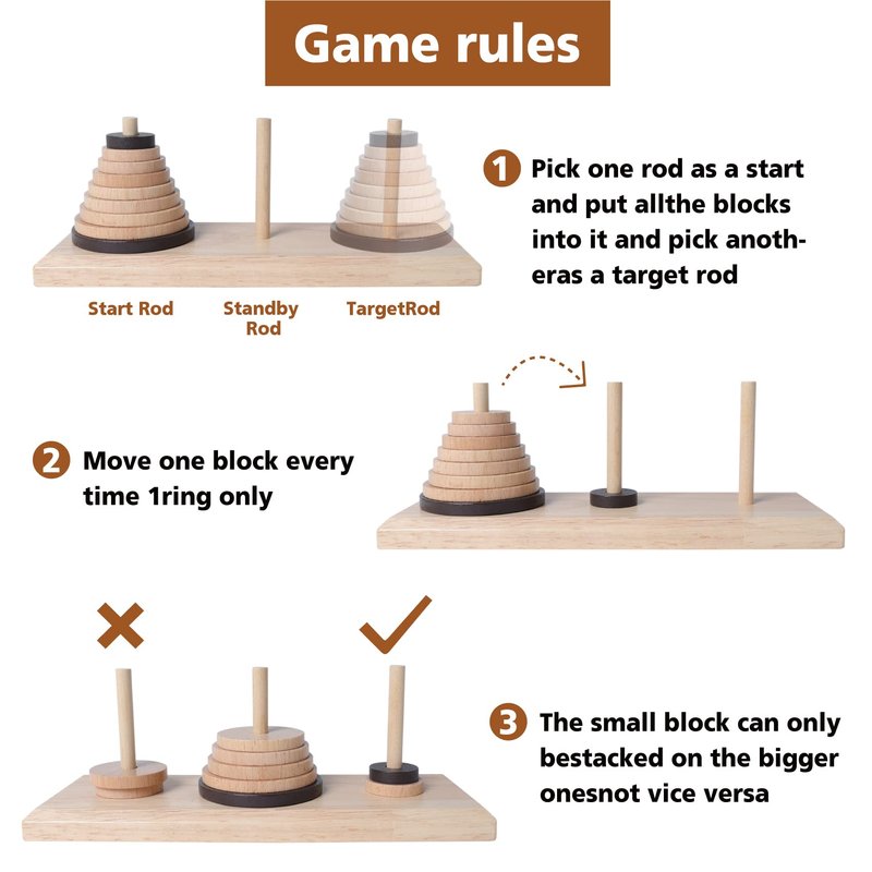 - 【BUY RISK-FREE AND CONTINUOUSLY IMPROVED】: The Tower of Hanoi is thoroughly inspected in strict accordance with the specified quality requirements. We fully stand behind our products with the best satisfaction. At the same time, the quality and performance of products will be continuously improved and optimized according to customer opinion.