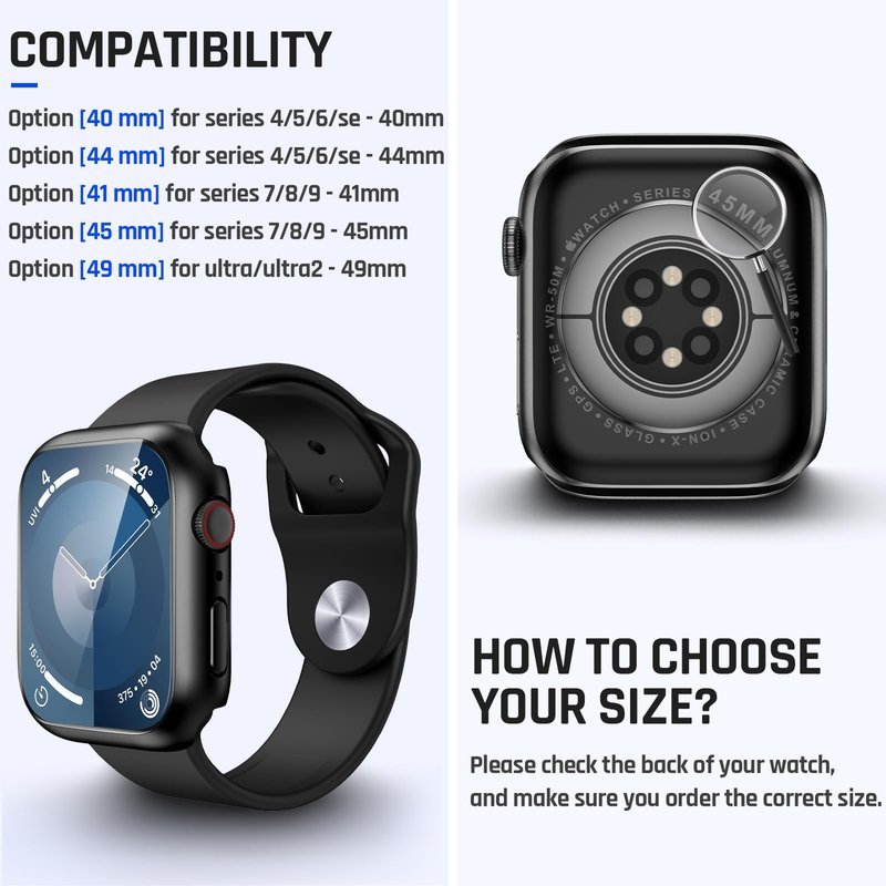 - 【Waterproof Case】The apple watch case 44mm use waterproof treatment, effectively prevent moisture in daily life from entering between the case and the watch screen, not affect your iWatch touch sensitivity. Fits for most kinds of indoor and outdoor sports. NOTE:the waterproof area is limited to the screen, not the sides of the watch. a little moisture may be trapped between the case and the watch gap, just wipe with a soft cloth or wipes.