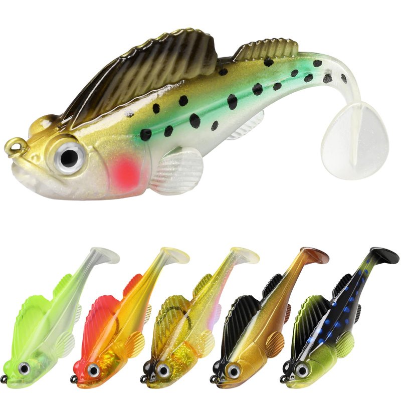 GOTOUR Fishing Lures Bass Lures Pre-Rigged Jig Head Paddle Tail Swimbaits, Weedless Soft Plastic Fishing Lures for Freshwater Saltwater, Soft Lures for Bass Trout Walleye, Fishing Gifts for Men